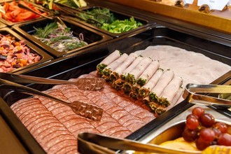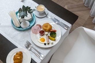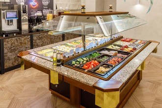 В ресторан можно забежать, чтобы быстро перекусить во время прогулки по городу, прийти на завтрак по системе «шведский стол» с 7:00 до 10:00. В обед встретиться с деловым партнером за бизнес-ланчем с 12:00 до 16:00. Меню бизнес-ланчей, куда входит салат, первое блюдо, горячее с гарниром и напиток обновляется ежедневно.